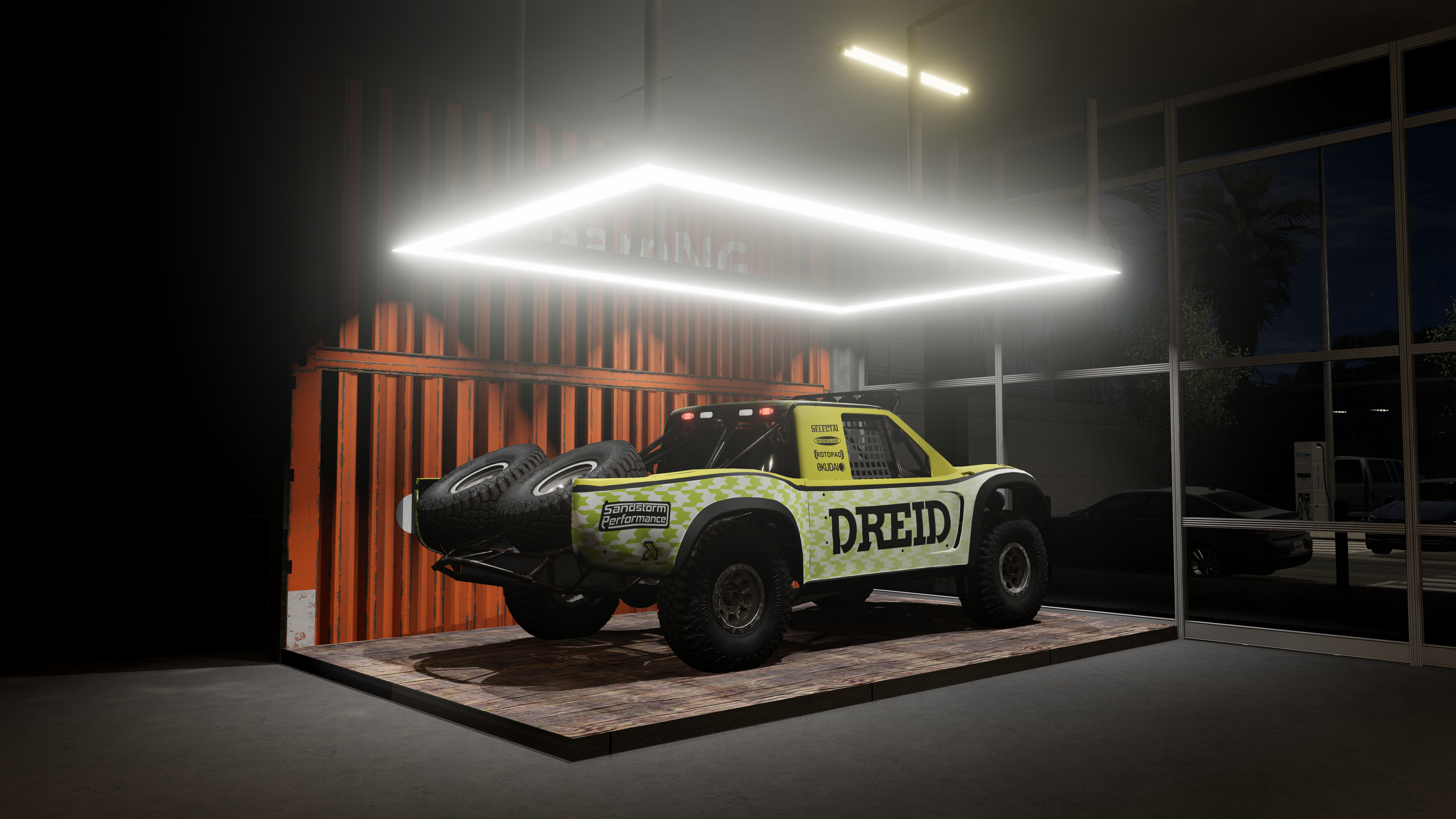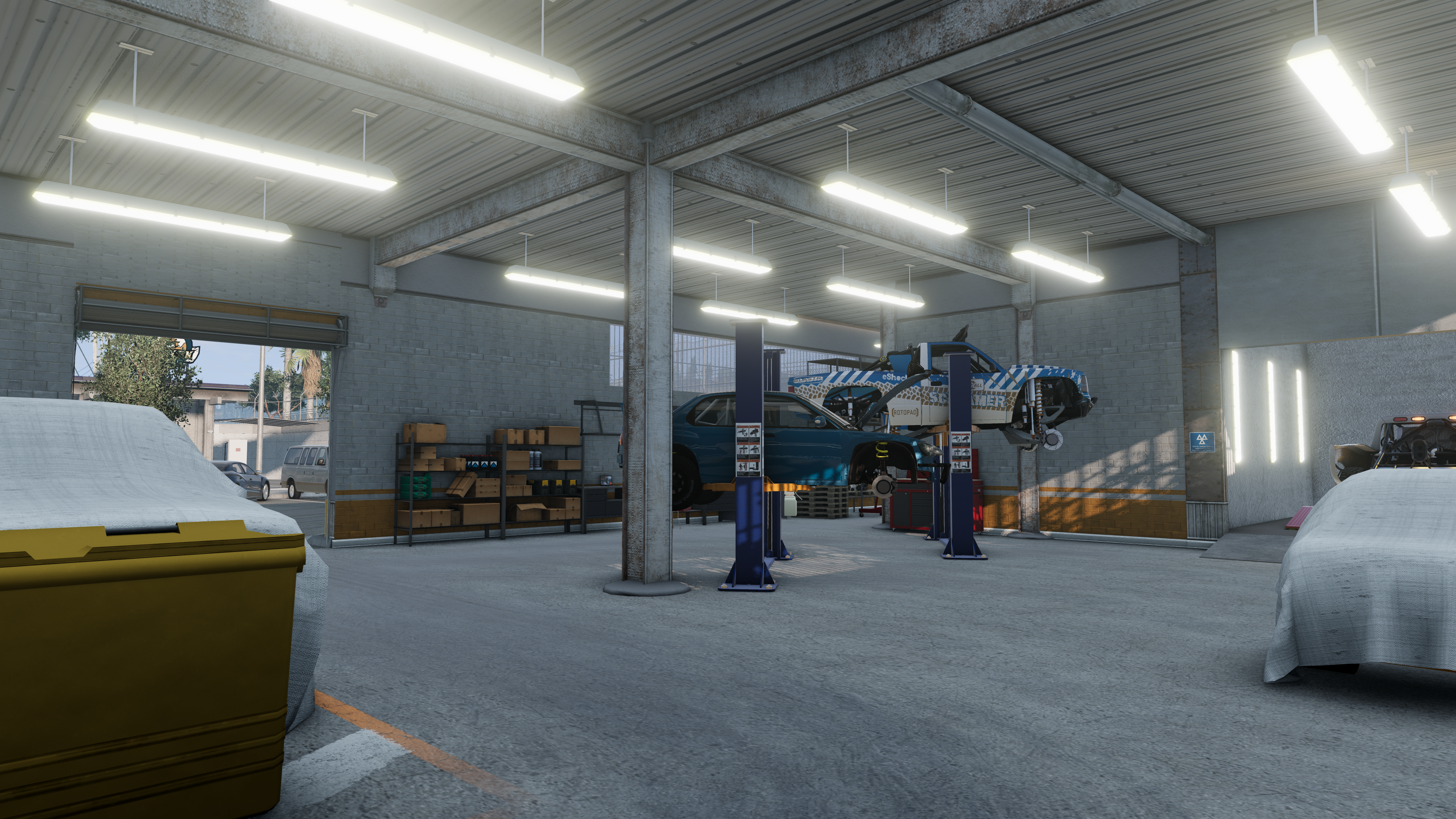 - A dealership (decoration): specializes in selling off-road vehicles. On its territory, there is an additional workshop for repairing and maintaining off-road equipment. Occasionally, you can bring your race car there for servicing.